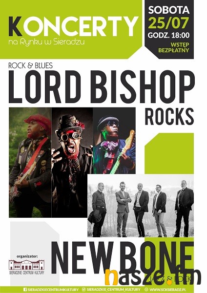 W sobotę 25 lipca na Rynku w Sieradzu wystąpią Lord Bishop Rocks & New Bone. Koncert rozpocznie się o godz. 18:00, wstęp wolny.