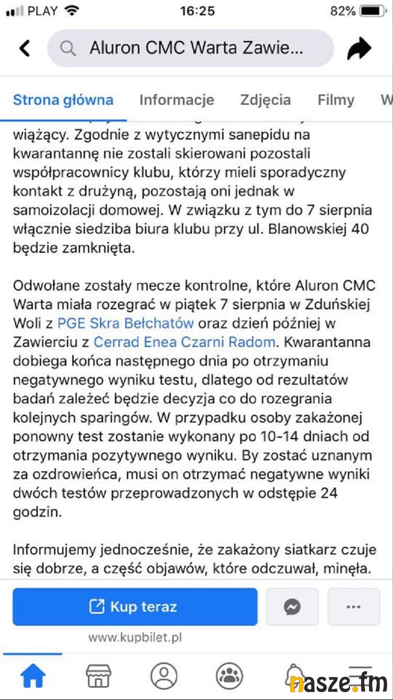 Zmiana przeciwnika nastąpiła w wyniku wykrycia koronawirusa u jednego z zawodników Aluronu. Na Facebooku klub poinformował o odwołaniu swoich najbliższych spotkań: