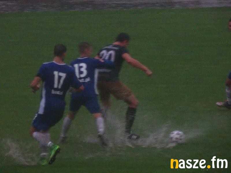 Pierwsza połowa przebiegła bez pogodowych ekscesów. Jutrzenka prowadziła po trafieniu Roberta Jareckiego. Później nad stadionem w Warcie rozpętało się prawdziwe atmosferyczne szaleństwo. Rzęsisty deszcz szybko zamienił boisko w bajoro. To oczywiście nie pozwoliło na normalne rozgrywanie piłki. W niektórych miejscach wody było aż po kostki. W tym mokrym spotkaniu lepiej poradzili sobie piłkarze Stali, którzy strzelili dwie bramki i zainkasowali trzy punkty. Autorem obu trafień okazał się Eryk Lebioda. Pod koniec spotkania wyrównującą bramkę mógł zdobyć Jarecki, który przy linii końcowej przepięknie zwiódł dwóch obrońców, następnie strzelił, ale tuż nad poprzeczką. Jak sam później stwierdził, nigdy nie grał w tak ciężkich warunkach.
