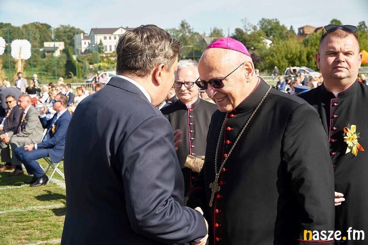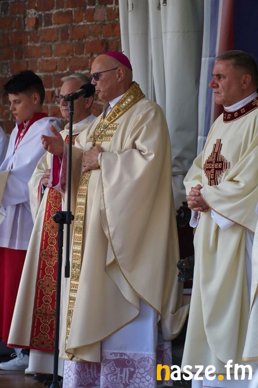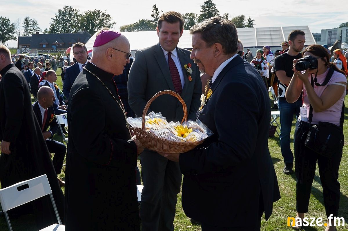- Po trudzie żniw mamy dziś święto plonów. Wierni tradycjom praojców, w nawiązaniu do dawnego polskiego zwyczaju, w tej niezwykłej scenerii ołtarza polowego, wspólnie wszyscy rolnicy, duchowieństwo, przedstawiciele Sejmu, Senatu, władze samorządowe, ludowe zespoły artystyczne – stajemy by podczas mszy świętej dziękować Bogu Ojcu za tegoroczne plony, za chleb a rolnikom za ich trud. Przychodzimy też wołać dla polskiej wsi o ludzi o wielkim sercu i wielkim zamiłowaniu do roli i jej owoców. – mówił ksiądz Bronikowski.