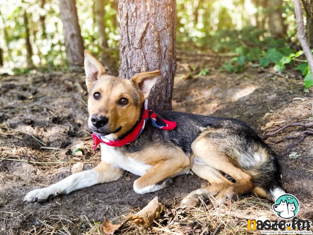 Zaczynamy od młodego, rocznego Lucky'ego. Ten czworonóg jest bardzo przyjaźnie nastawiony do ludzi. Uwielbia dzieci i zabawy, z chęcią zaczepia i zachęca do rzucania piłeczek. Lucky to średniej wielkości psiak, waży 26 kg i sięga do kolana. Bardzo ładnie chodzi na smyczy i świetnie odnajduje się podczas spacerów. Lucky z powodzeniem dogaduje się z innymi psami. To typowy, rodzinny psiak, który potrzebuje wesołych i aktywnych opiekunów, u których boku będzie mógł szczęśliwie dorastać.