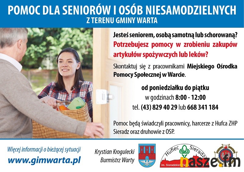 - W takiej sytuacji wystarczy kontakt telefoniczny z naszym ośrodkiem pomocy społecznej. Pomocy będą udzielali pracownicy ośrodka, ale też nasi strażacy ochotnicy z poszczególnych jednostek oraz warccy harcerze z Hufca ZHP Sieradz - mówi Krystian Krogulecki, burmistrz Warty.