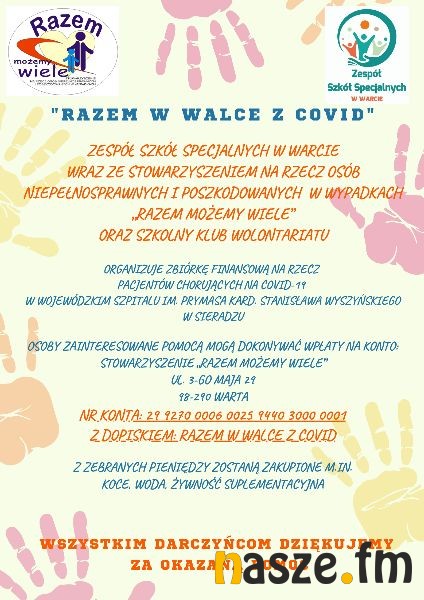 Zespół Szkół Specjalnych w Warcie, Stowarzyszenie "Razem możemy wiele" i szkolny wolontariat ZSS w Warcie, organizuje zbiórkę na rzecz pomocy pacjentom sieradzkiego szpitala.