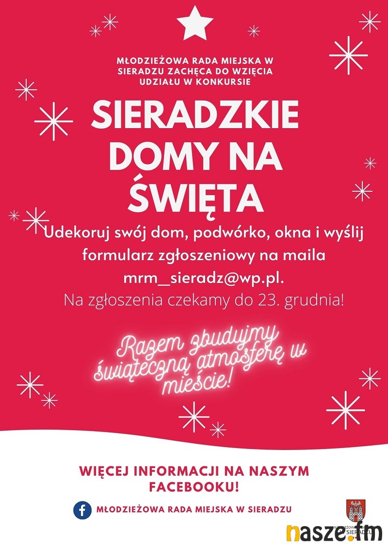 Młodzieżowa Rada Miejska w Sieradzu zaprasza wszystkich mieszkańców miasta do wzięcia udziału w konkursie na najpiękniejszą dekorację świąteczną. Do wygrania atrakcyjne nagrody niespodzianki.