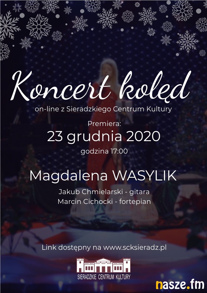 - Drodzy Przyjaciele Sieradzkiego Centrum Kultury! Za nami wyjątkowo trudny pod każdym względem rok. Trudny szczególnie dla kultury. Bardzo dziękujemy, że byliście z nami. Dziękujemy za wszystkie spotkania na wydarzeniach organizowanych w naszych murach, jak i tych plenerowych oraz online. Wasza obecność i dobre słowo daje nam motywację do dalszego działania. Z okazji zbliżających się Świąt, życzymy Wam, aby wszystkie chwile spędzone w rodzinnym gronie były radosne i spokojne. Życzymy również zdrowia i tego, aby nowy rok pozwolił zrealizować wszystkie plany prywatne i zawodowe. Niech 2021 przyniesie wiele okazji do wspólnych spotkań, uśmiechu i smakowania kultury. Życząc wszystkiego, co najpiękniejsze w te Święta, przekazujemy wam link do wyjątkowego koncertu kolęd, który w grudniu tego roku nagraliśmy na deskach naszej sceny. Najpiękniejsze pieśni Bożonarodzeniowe zaśpiewała dla Państwa utalentowana sieradzanka, Magda Wasylik. Mamy ogromną nadzieję, że ten koncert pomoże wprowadzić magiczny klimat Świąt w tych trudnych i wyjątkowych czasach. Życzymy przyjemnego słuchania - pracownicy Sieradzkiego Centrum Kultury.