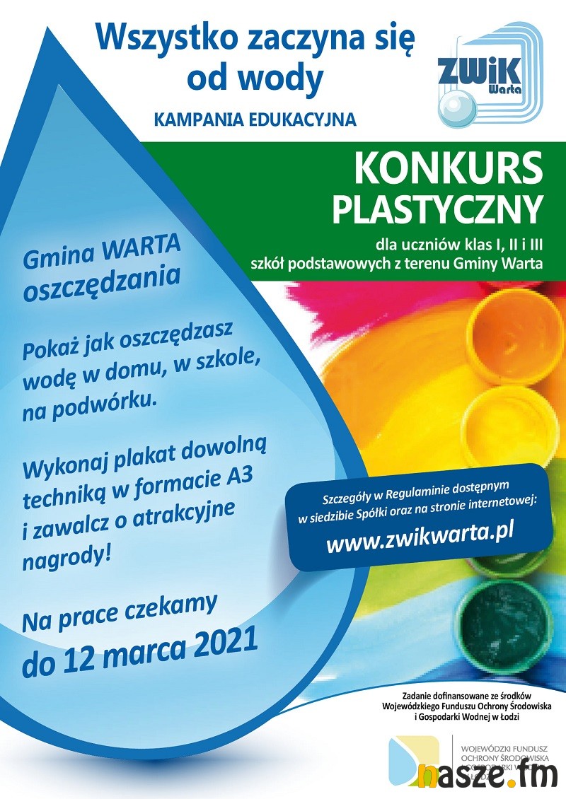 Ruszył właśnie cykl działań pod nazwą "Wszystko zaczyna się od wody - kampania edukacyjna ZWiK w Warcie". We wtorek na facebookowym profilu spółki ogłoszony został konkurs plastyczny dla uczniów klas I-III szkół podstawowych z terenu gminy Warta.