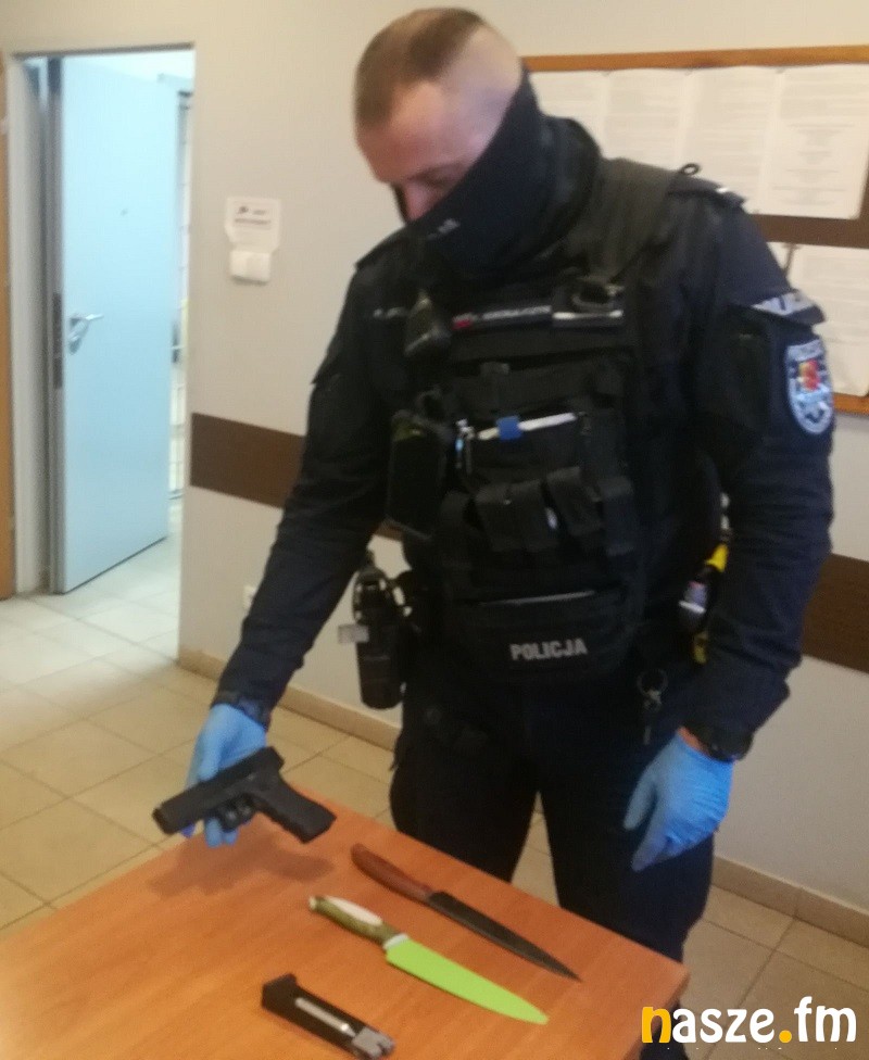 Po kilkunastu minutach pościgu policjanci zajechali mu drogę, udaremniając dalszą ucieczkę. Mężczyzna zabarykadował się w samochodzie. Mimo wielokrotnych wezwań do opuszczenia pojazdu, mężczyzna nie reagował. Policjanci zmuszeni byli wybić szybę, aby wyprowadzić go z samochodu. W czasie przeszukania, przy mężczyźnie funkcjonariusze znaleźli dwa noże kuchenne, które schował pod odzieżą. Ponadto w samochodzie zabezpieczyli również wiatrówkę.