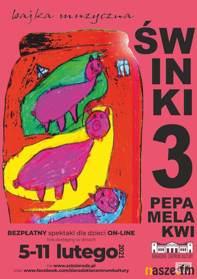 Sieradzkie Centrum Kultury zaprasza na bezpłatny spektakl dla dzieci w wesji online "Świnki 3- Pepa, Mela, Kwi". Premiera spektaklu 5 lutego o godzinie 10.