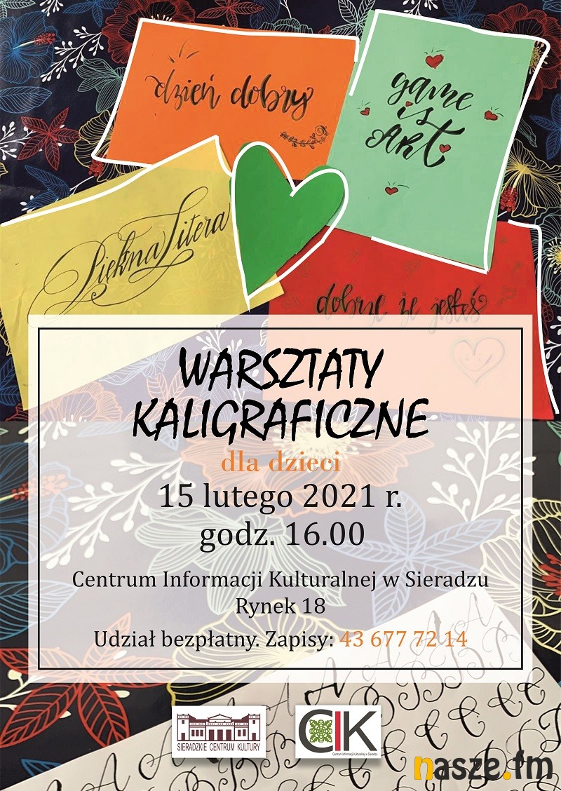 Centrum Informacji Kulturalnej w Sieradzu zaprasza 15 lutego na warsztaty kaligraficzne dla dzieci w wieku od 6 do 12 lat. Zajęcia będą się odbywać zgodnie z wymogami sanitarno-epidemiologicznymi.