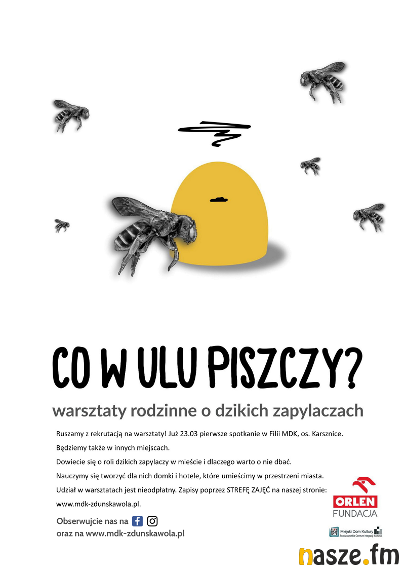 Trwa rekrutacja na bezpłatne warsztaty w ramach projektu "Co w ulu piszczy?". Na realizację tego zadania Miejski Dom Kultury otrzymał dofinansowanie z Fundacji Orlen w ramach programu "Moje miejsce na Ziemi".