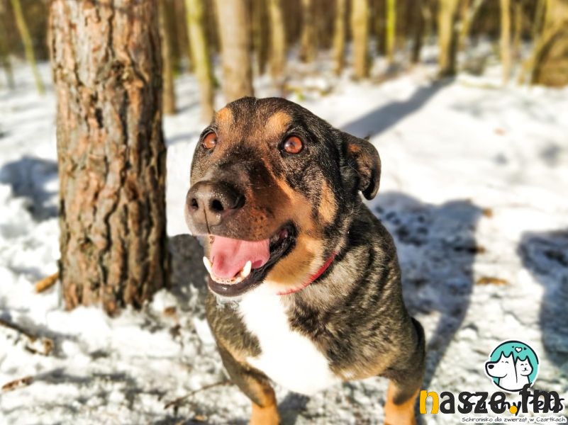 Zastanawiacie się gdzie można znaleźć Kasztana w środku zimy? W Czartkach. Czeka i wierzy, że jest ktoś, kto da mu szansę i stworzy warunki, w których będzie mógł odważniej podchodzić do życia. Kasztan ma 5 lat i każdego dnia szuka kontaktu z człowiekiem, ale sam nie do końca wie jak się zachować. W kojcu śmiało podbiega i zaczepia do zabawy, jednak kiedy człowiek reaguje na jego zaczepki, szybciutko się wycofuje. Potrzebuje człowieka, który będzie świadomy jego barier i zechce je razem z nim pokonywać. Kasztaniak bez problemu dogaduje się z innymi psami, podpatruje od nich zachowania i uczy się życia wśród ludzi, więc wspaniale będzie, jeżeli trafi do domu, w którym będzie mieszkał już inny, towarzyski psiak. Z powodzeniem opanował naukę chodzenia na smyczy, drepta spokojnie, blisko opiekuna, uważnie obserwując wszystko dookoła. Lubi spacerować, ale nie jest specjalnie aktywny czy energiczny, krótkie wycieczki w zupełności mu wystarczą. Na razie nie jest mocno wylewny w uczuciach, ale kiedy zaufa i otworzy się w stu procentach, to może być z niego pieszczoch, delikatne głaski uwielbia. To fajny, przyjazny pies, który zrobił ogromne postępy i z dnia na dzień coraz bardziej otwiera się na nowe. Może ktoś z Was zechce zostać jego ludzkim przewodnikiem i podaruje mu mnóstwo miłości? Zapraszamy na zapoznawczy spacerek.
