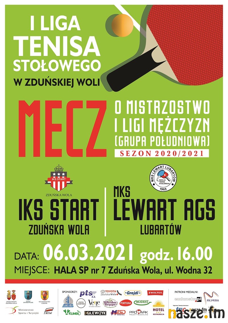 Jutro START Zduńska Wola zagra u siebie z MKS-em Lubartów w ramach rozgrywek I ligi tenisa stołowego. Przegrana bardzo skomplikuje sytuacje zduńskowolan w lidze. Początek spotkania o 16:00 w hali Szkoły Podstawowej nr 7 w Zduńskiej Woli.