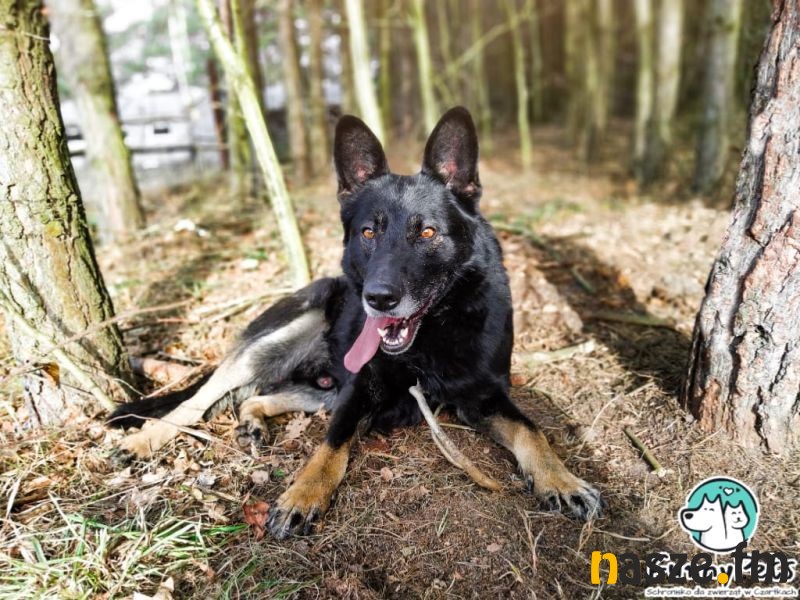 Kolejnym psiakiem jest 6-letni Hermes, psiak sporych rozmiarów o jeszcze większym sercu. Hermes jest wspaniałym psem, który nie lubi nudy, zdecydowanie bardziej woli aktywnie spędzać czas, na długich spacerach jest w swoim żywiole, uwielbia biegać, węszyć, a to wszystko oczywiście u boku człowieka. Jest bardzo towarzyski i kontaktowy, bywa mocno wylewny w uczuciach, więc przy maluchach trzeba uważać, żeby z tej miłości niechcący nie zrobił krzywdy, bo lubi sobie chłopak skoczyć i wtulić się na dwóch łapach. Ma dużo siły i na smyczy zdarza mu się z ekscytacji rwać do przodu, kiedy się wybiega, idzie tempem opiekuna, blisko nogi. Sądzimy, że jak poczuje się pewniej to może zacząć pilnować posesji, w kojcu też lubi sobie szczeknąć. Zdecydowanie lepiej dogaduje się z psami swojej wielkości, lub większymi, te mniejsze próbuje "ustawiać". Mimo swoich gabarytów powinien odnaleźć się w mieszkaniu, ale dom z ogrodem to również świetna opcja.