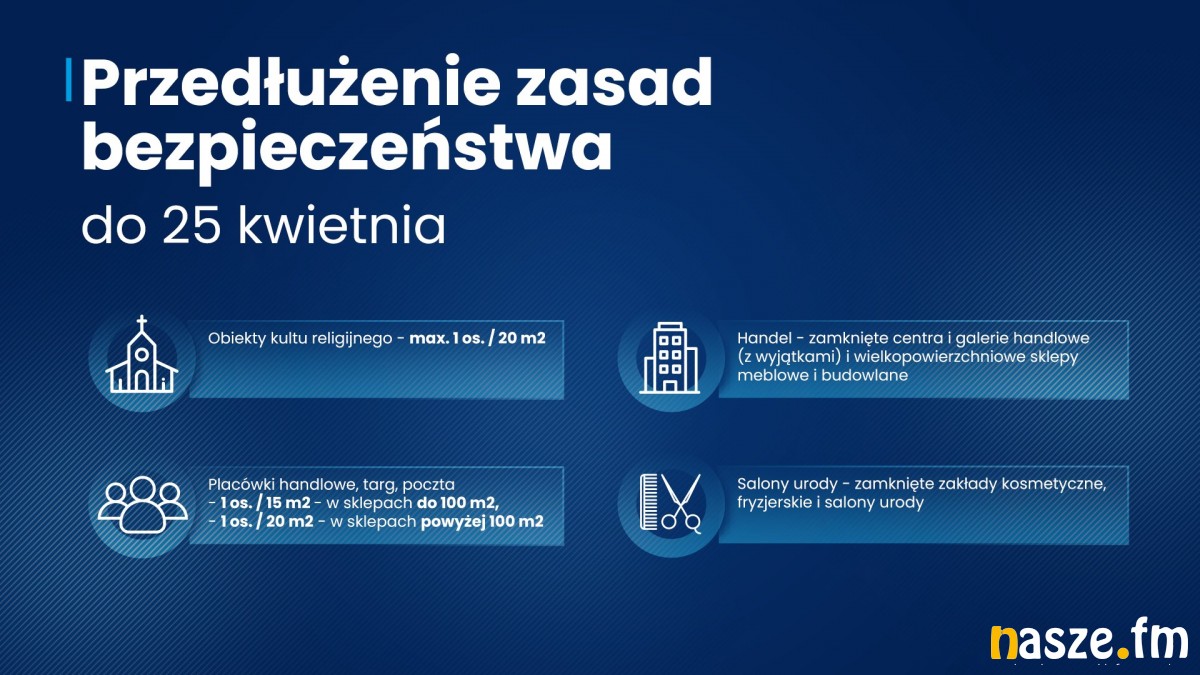 Dotychczasowe obostrzenia przedłużone zostają do niedzieli, 25 kwietnia 2021 r.