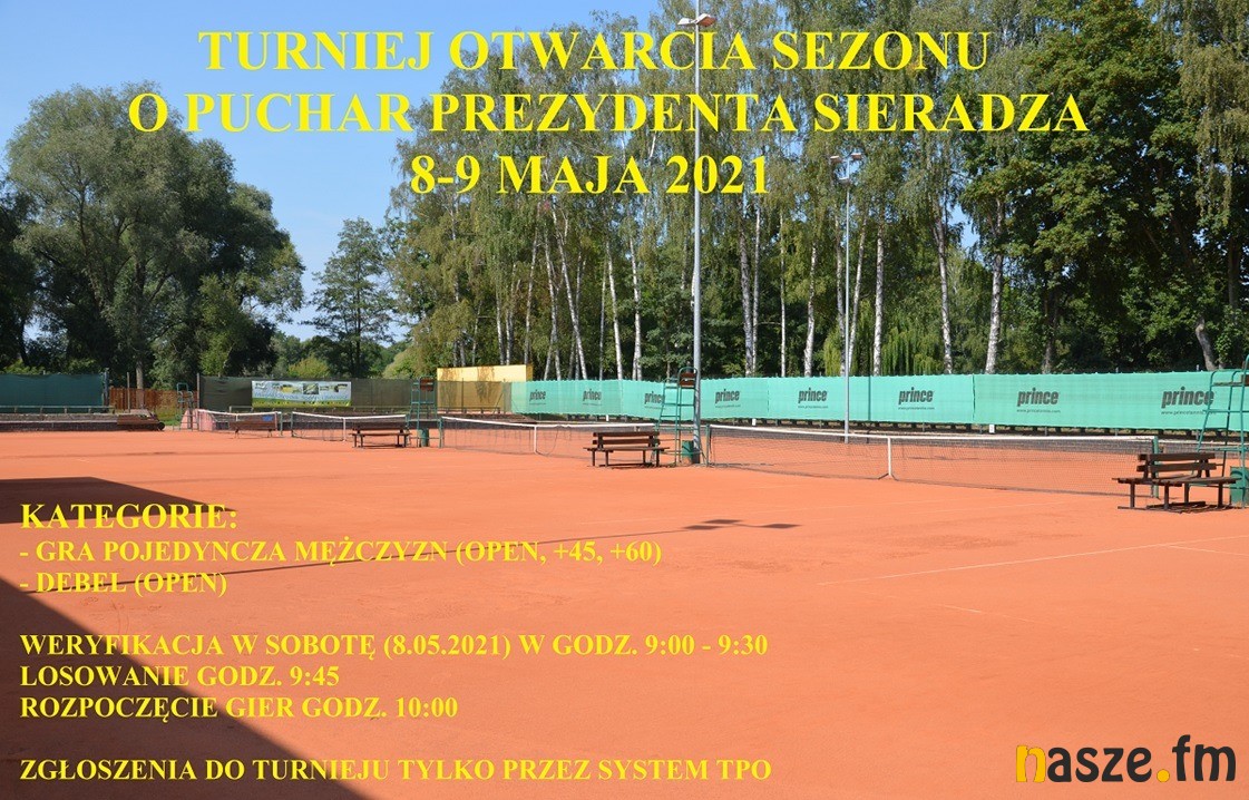 Miejski Ośrodek Sportu i Rekreacji w Sieradzu zaprasza na Turniej Otwarcia Sezonu o Puchar Prezydenta Sieradza w tenisie ziemnym. Zawody odbędą się w ten weekend.