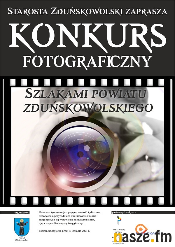 Powiat zduńskowolski zachęca do wzięcia udziału w I Konkursie Fotograficznym pn. "Szlakami Powiatu Zduńskowolskiego". Skierowany jest do młodzieży w wieku szkolnym.