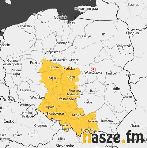 Ostrzeżenie będzie obowiązywać dziś od godz. 14:00 do 6:00 jutro.