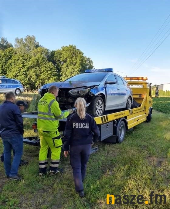 Uszkodzony radiowóz marki kia ceed zabrała z miejsca zdarzenia specjalistyczna firma pomocy drogowej.