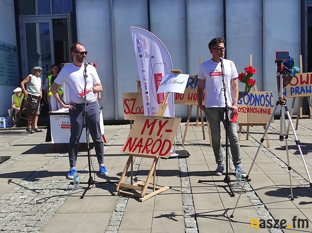 Tour de Konstytucja PL - akcja popularyzująca zapisy Konstytucji zawitała do Zduńskiej Woli. Na pl. Wolności pojawili się m. in. sędzia Igor Tuleya, mecenas Zbigniew Bakalarczyk i Robert Hojda prezes KORD.