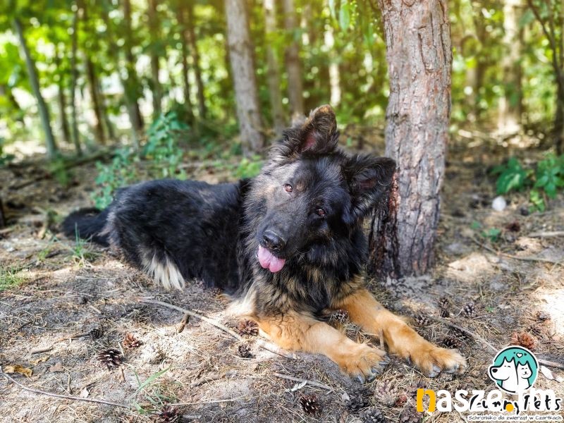 Piękny, młody i bardzo bystry - taki jest Marlon. To duży psi dzieciak, któremu w głowie jedynie zabawa, przez co w kojcu jest bardzo znudzony, potrzebuje kontaktu z człowiekiem i sporo zajęcia. Ma niesamowicie dużo energii, najlepiej odnajdzie się w aktywnej rodzinie, która będzie z nim pracować, bo jest do tego chętny i można go wiele nauczyć. Uwielbia wylegiwać się w słońcu na trawie i domagać miziania, zwłaszcza za uchem, to ogromny pieszczoch. Kocha spacery, zwłaszcza te długie i intensywne, jest ciekawy świata, uwielbia węszyć i z uwagą rozglądać się po otoczeniu. Jest silny, na smyczy ciągnie, zwłaszcza na początku, kiedy jest podekscytowany, przy regularnych wyjściach powinno się to zmienić. Jest typem psa rodzinnego, nie jest stróżujący, lubi każdego człowieka, nawet najmłodszych, lecz czasem nie zdaje sobie sprawy z własnej wielkości i może być mało delikatny, ale wszystko z miłości. To przesympatyczny, radosny i niesamowicie pozytywny pies, którego ciężko nie polubić.