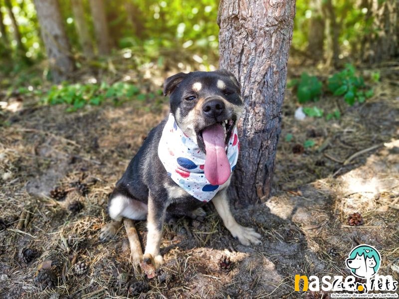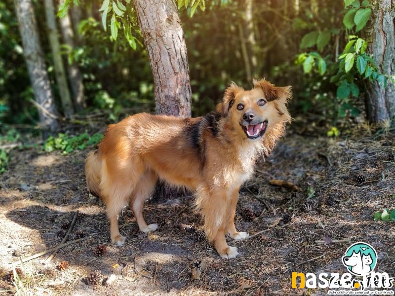 Na dobry początek wyjątkowej urody suczka Ami. Ami to bardzo energiczna i żywiołowa sunia, ciężko jej usiedzieć w miejscu, uwielbia się bawić, biegać, spacerować - jest ciekawa świata, wszystko ją interesuje, będzie cudowną towarzyszką rodzinnych wycieczek. Bardzo lubi dzieci, ma z nimi kontakt podczas wolontariatu, jest łagodna i przekochana, ale z tej swojej miłości bywa natarczywa i czasem mało delikatna, bo lubi sobie poskakać na człowieka. Potrafi chodzić na smyczy, ale na początku z podekscytowania spacerem rwie do przodu, kiedy się zmęczy, idzie ładnie przy nodze. Różnie jest w stosunku do innych psów, nie z każdym się dogada, czasem bywa zaczepna, więc jeżeli miałaby zamieszkać z innym psiakiem, to najlepszy będzie spacer zapoznawczy jeszcze w schronisku. To wesoła, radosna psinka, która ma wiecznie zadowolony pyszczek. Może zamieszkać w domu z ogrodem, jak i w mieszkaniu.