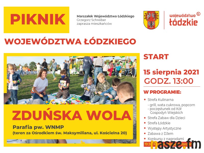 Grzegorz Schreiber, Marszałek Województwa Łódzkiego zaprasza na Piknik Rodzinny w Zduńskiej Woli! Symulator dachowania, koncerty, animacje i darmowa wata cukrowa dla dzieci! Te i wiele innych atrakcji czeka 15 sierpnia podczas Pikniku Rodzinnego w Zduńskiej Woli. To wspaniała okazja, aby spędzić czas w rodzinnym gronie oraz dowiedzieć się więcej o ofercie Urzędu Marszałkowskiego Województwa Łódzkiego i działalności jednostek podległych, w tym o Funduszach Europejskich.