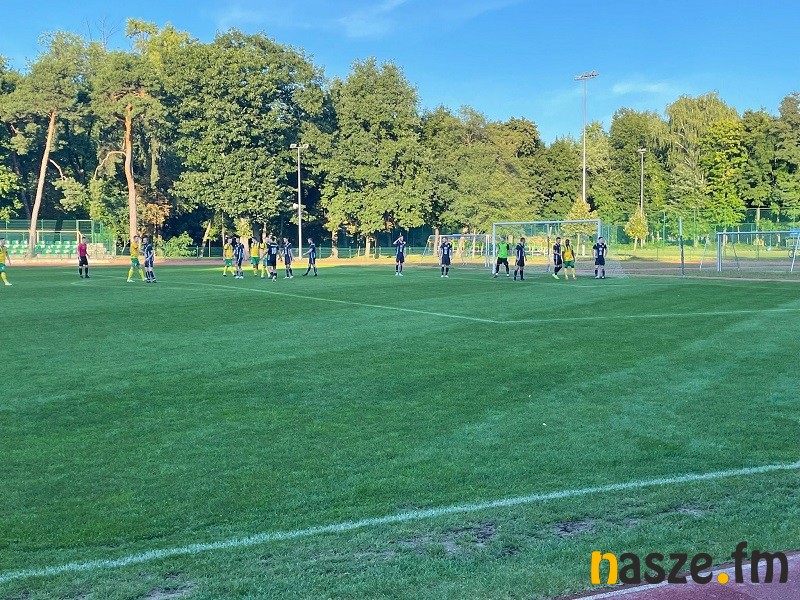 Już w 8 minucie meczu w Wiśniowej Górze sędzia podyktował rzut karny dla biało-zielonych po faulu na Wiktorze Płanecie. Do jedenastki podszedł Krystian Stolarczyk i strzelił pierwszą bramkę w tym spotkaniu. Dwadzieścia minut później drużyna gospodarzy wyrównała po zamieszaniu w polu karnym - bramkę przypisano Krystianowi Kamińskiemu. Remisem 1:1 zakończyła się pierwsza część spotkania.