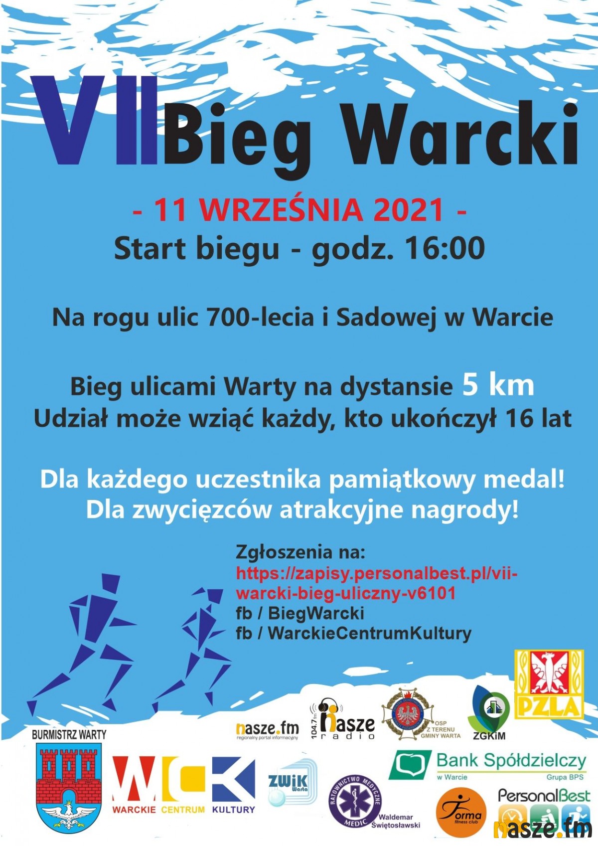 Dziś odbędzie się VII Bieg Warcki. Start o 16:00. Zapisy wciąż trwają. W związku z organizacją zawodów wystąpią utrudnienia w ruchu drogowym. Bieg stanowi jedną z części imprezy “Pożegnanie Lata”.