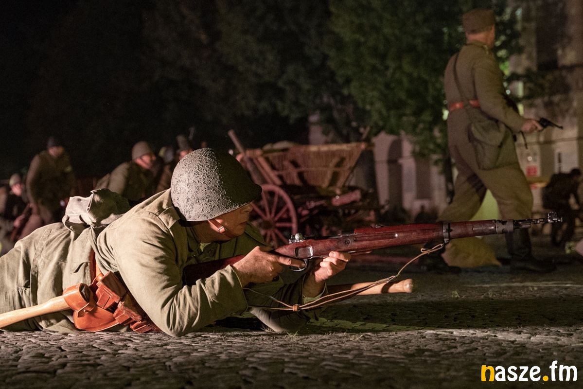 Huk wystrzałów, dym, terkotanie broni maszynowej. Na Starym Rynku w Łowiczu w wojskowych mundurach pojawili się Niemcy, a atak odpierali wojskowi w polskich mundurach