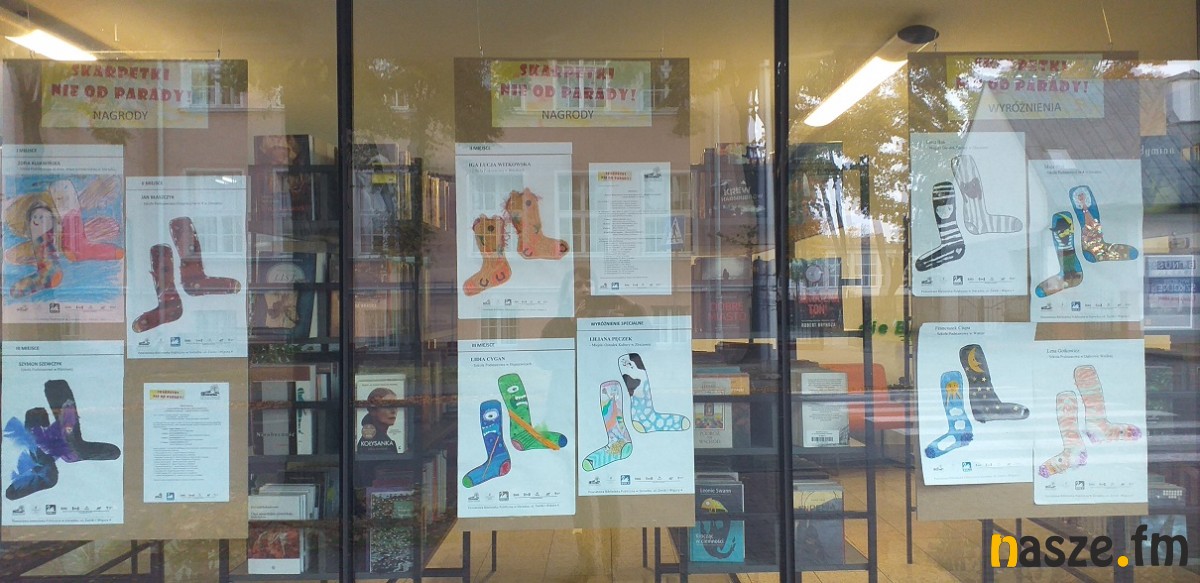 Przechodząc ulicą Żwirki i Wigury w Sieradzu obok Powiatowej Biblioteki Publicznej można podziwiać prace nagrodzone i wyróżnione w konkursie "Skarpetki nie od parady". Prace konkursowe zostały umieszczone w oknach wypożyczalni dla dorosłych.