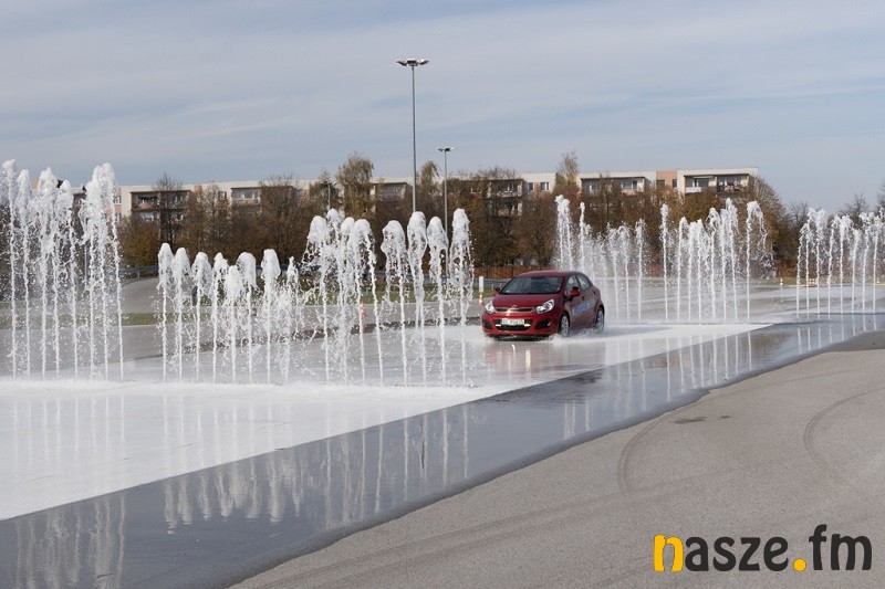 Po części teoretycznej był czas na szkolenie praktyczne, podczas którego jego uczestnicy wpadali w kontrolowany poślizg na płytach poślizgowych na prostej drodze i na łuku. Trenowali również hamowanie na śliskiej nawierzchni, a wszystko po to, by wyćwiczyć reakcje obronne przydatne w sytuacjach awaryjnych.