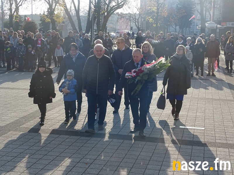 Na plac przy pomniku marszałka Józefa Piłsudskiego przybyło kilka delegacji ze sztandarami, przedstawiciele lokalnych władz samorządowych, ale i sieradzanie, którzy zrobili to nawet całymi rodzinami.