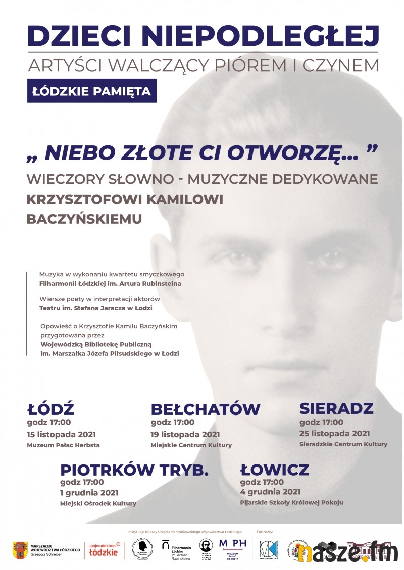 Krzysztof Kamil Baczyński został ogłoszony przez Sejm Rzeczpospolitej Polskiej jednym z Patronów Roku 2021. Z tej okazji Marszałek Województwa Łódzkiego Grzegorz Schreiber zaprasza na cykl wieczorów słowno-muzycznych zatytułowanych "Niebo złote Ci otworzę…".