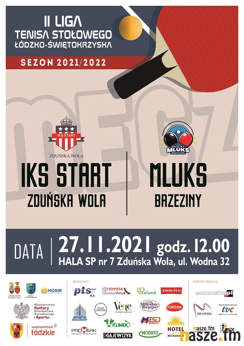 Klub IKS START Zduńska Wola zaprasza na mecz II ligi tenisa stołowego. Spotkanie z MLUKS-em Brzeziny rozpocznie się o 12:00 w hali Szkoły Podstawowej nr 7 w Zduńskiej Woli.