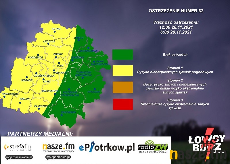 Czas obowiązywania: od 12:00 28.11.2021r. do 6:00 29.11.2021r.