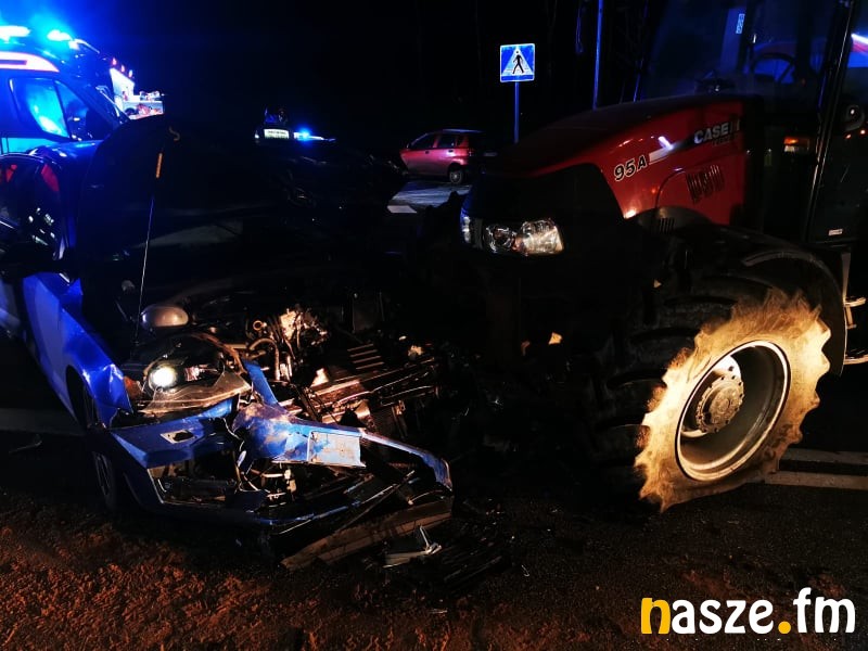 W miejscowości Osiny koło Szadku doszło do czołowego zderzenia samochodu osobowego z ciągnikiem rolniczym.