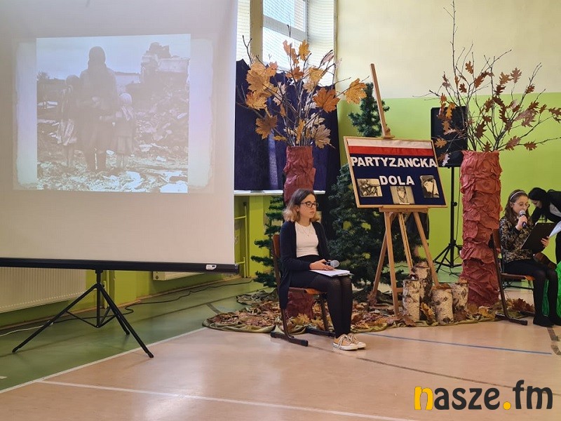 Głos zabrała potem Anna Gołębiowska, dyrektorka szkoły. Podczas uroczystości pokazano też program artystyczny zatytułowany ,"Partyzancka dola" przygotowany przez uczniów oraz ich opiekunów. Zaprezentowano inscenizację pt. Maciuś zostaje partyzantem. Stworzoną ją na podstawie opowiadania Teodora Goździkiewicza z książki pt. Cienie lasu.
