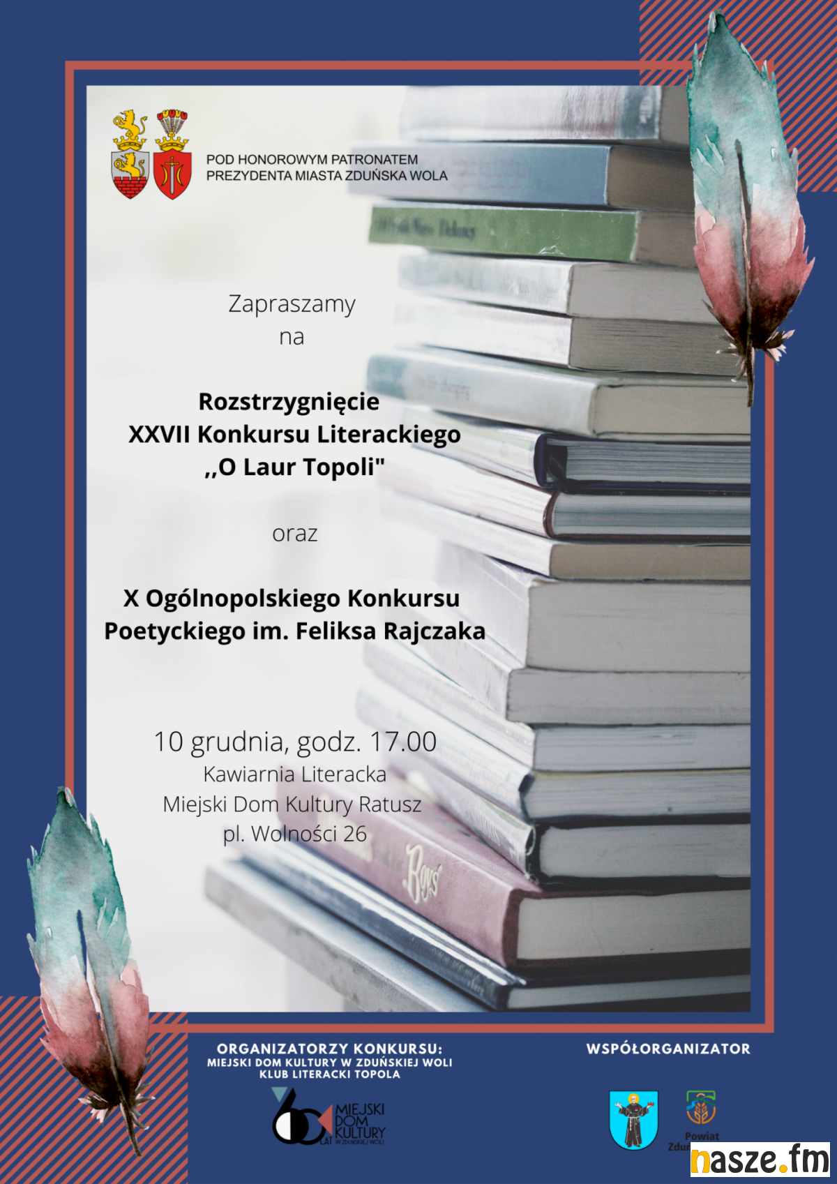 Dzisiaj poznamy laureatów X Ogólnopolskiego Konkursu Poetyckiego im. Feliksa Rajczaka i XXVII Konkursu Literackiego "O Laur Topoli", które zorganizował Miejski Dom Kultury w Zduńskiej Woli.