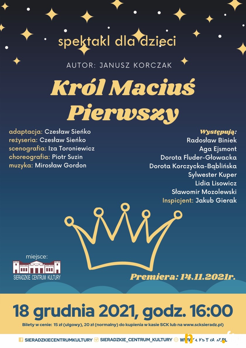 W sobotę 18 grudnia w Teatrze Miejskim w Sieradzu mali widzowie będą mieli okazję poznać historię małego królewskiego syna, który wskutek posępnego zrządzenia losu nieoczekiwanie zostaje królem. To przedstawienie na podstawie powieści Janusza Korczaka, przygotowane przez Zdrojowy Teatr Animacji w Jeleniej Górze.