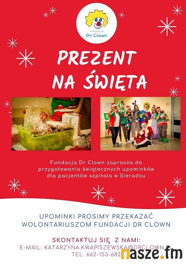 - Zbliżające się święta są wspaniałą okazją by podzielić się uśmiechem i dobrym słowem. W bardzo symboliczny sposób chcielibyśmy dotrzeć do pacjentów Szpitala Wojewódzkiego w Sieradzu i pozwolić, by tuż przed wigilią na ich salach i w ich sercach zagościła świąteczna atmosfera. Wzorem zeszłego roku zachęcamy do zorganizowania zbiórki świątecznych prezentów, które zostaną przekazane chorym- zapowiada Katarzyna Kwapiszewska, pełnomocnik Fundacji Dr Clown