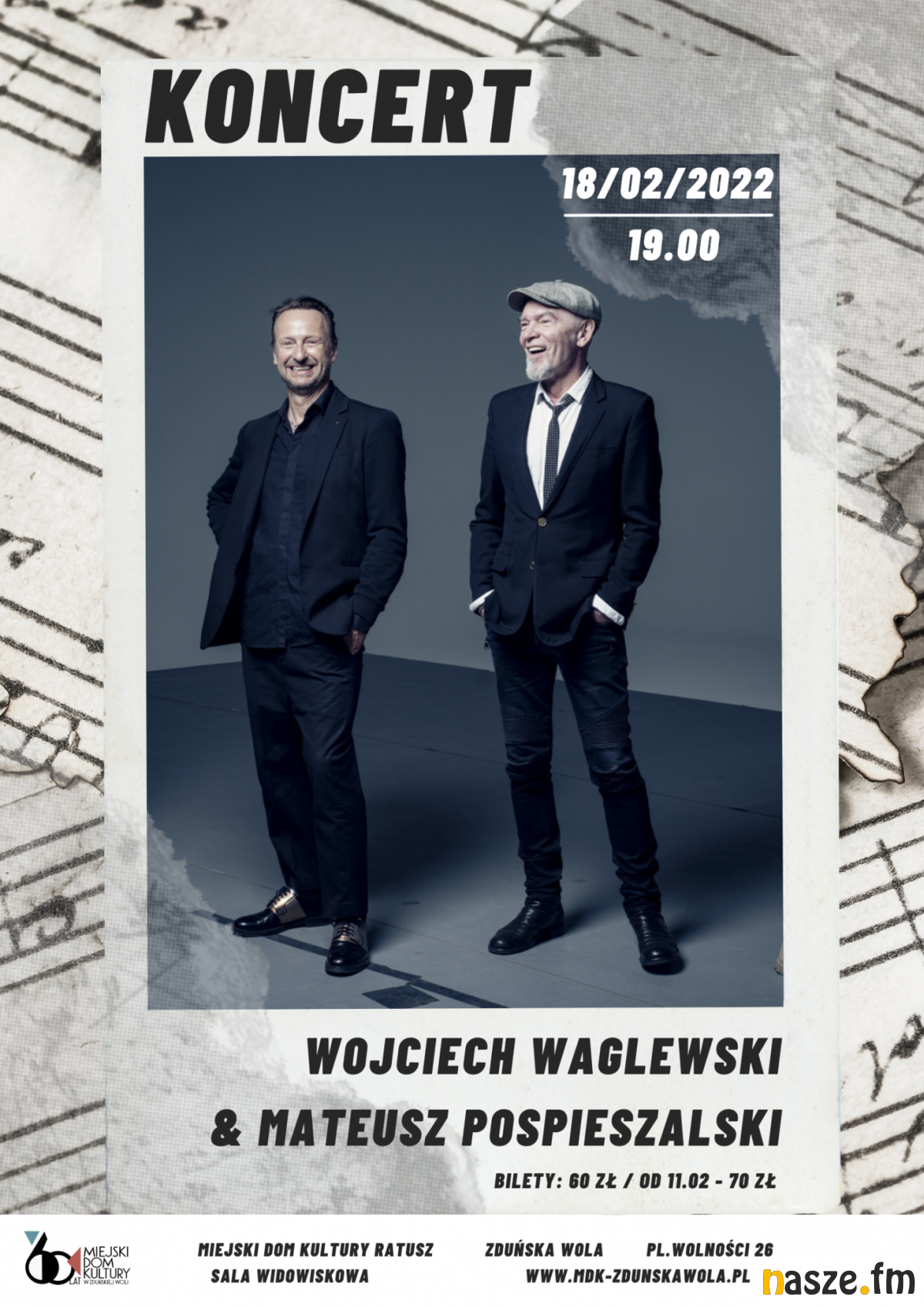 Koncert duetu: Wojciech Waglewski & Mateusz Pospieszalski dzisiaj o godzinie 19.00 w sali widowiskowej w Miejskim Domu Kultury Ratusz, pl. Wolności 26.
