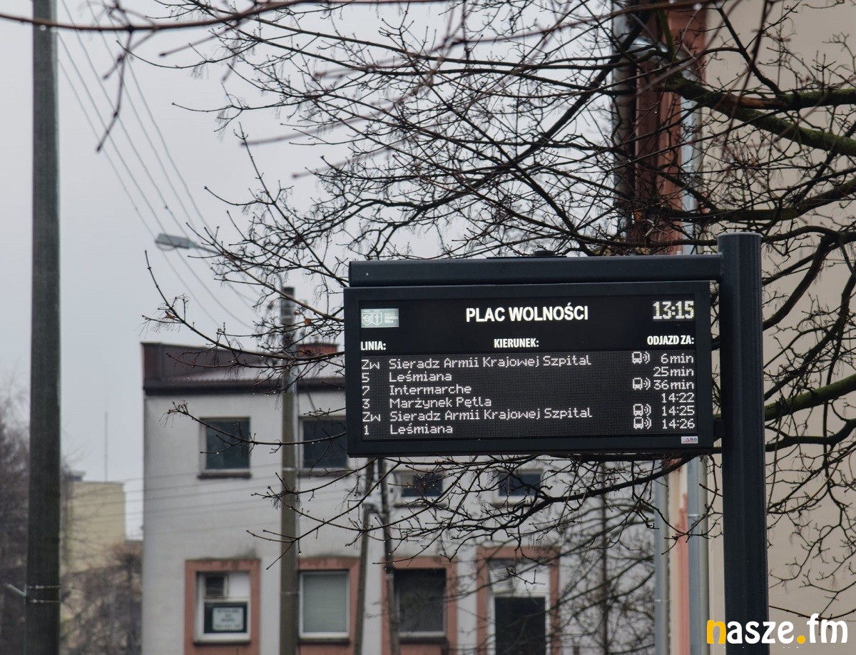 Na przystanku przy Placu Wolności w Zduńskiej Woli zainstalowano elektroniczną tablicę z rozkładem jazdy Miejskiego Przedsiębiorstwa Komunikacji. Tablica informuje, za ile przyjedzie autobus danej linii.