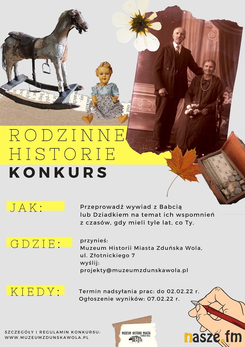 Zbliża się Dzień Babci i Dziadka. Z tej okazji Muzeum Historii Miasta Zduńska Wola zaprasza osoby w wieku 9-19 lat do udziału w konkursie "Rodzinne Historie. Rozmowa łączy pokolenia".