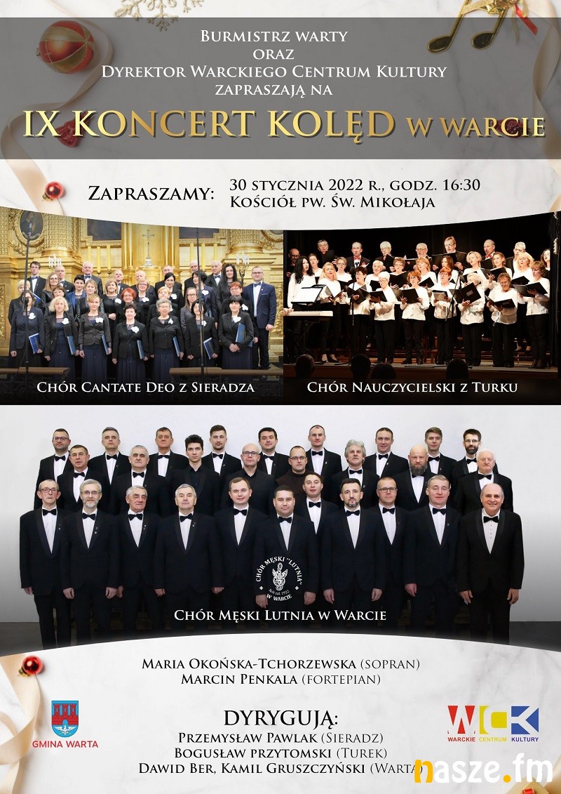 Wspólnie kolędować będą Chór Cantate Deo z Sieradza, Chór Nauczycielski z Turku oraz Chór Męski Lutnia z Warty.