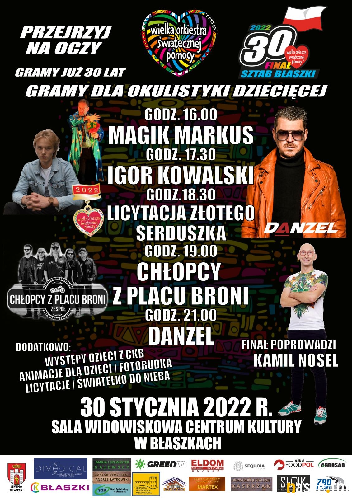 Dodatkowo: występy dzieci z Centrum Kultury w Błaszkach, animacje dla dzieci, fotobudka, licytacje, światełko do nieba.