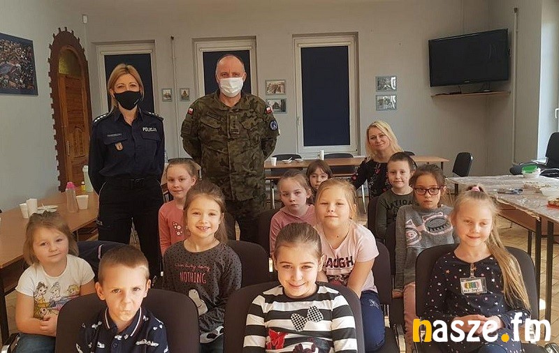 Funkcjonariusze przypomnieli najmłodszym zagrożenia wynikające z kontaktu z nieznajomym. Szczególnie podkreślali, aby nie otwierać drzwi do domu obcym osobom. Poruszony został również temat, jak się zachować w przypadku zgubienia podczas rodzinnych wyjazdów czy też pobytu w centrach handlowych. Mundurowi podkreślali, że w takich niepokojących sytuacjach zawsze mogą zwrócić się o pomoc do policjanta.