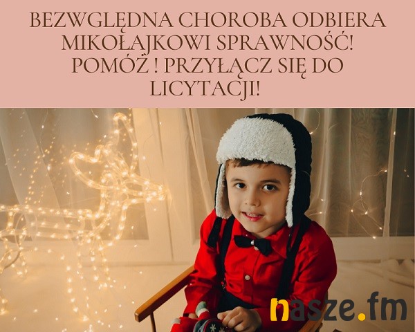 W minionym tygodniu rozpoczęła się akcja pomocy w formie licytacji dla 5-letniego Mikołaja Janiaka z Sieradza, który walczy ze śmiertelną chorobą - Dystrofią Duchenne’a. Codzienna walka o sprawność chłopca sprowadza się do ogromnych kosztów. Aby wesprzeć starania rodziców w walce o sprawność Mikołajka wystarczy wziąć udział w licytacjach na specjalnie w tym celu utworzonej grupie na Facebooku.