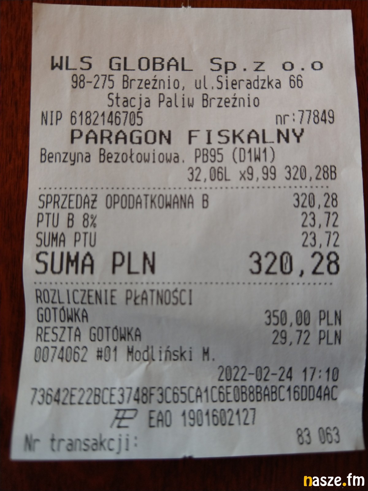 W związku ze wzrostem sprzedaży na naszych stacjach informujemy, że dostawy paliw są w pełni zabezpieczone i wszyscy nasi klienci będą obsłużeni. Dotyczy to rynku hurtowego i detalicznego. Apelujemy również o dokładne weryfikowanie źródeł informacji dotyczących dostępności paliwNa niektórych stacjach paliw w regionie cena za litr benzyny wynosiła wczoraj nawet 9,99 za litr. Tak było m.in. w Brzeźniu czy w Zapolicach: