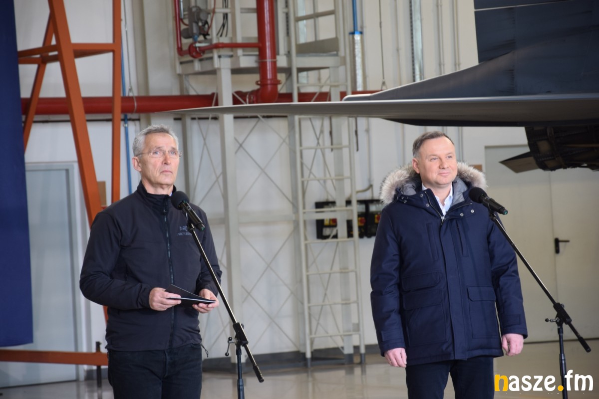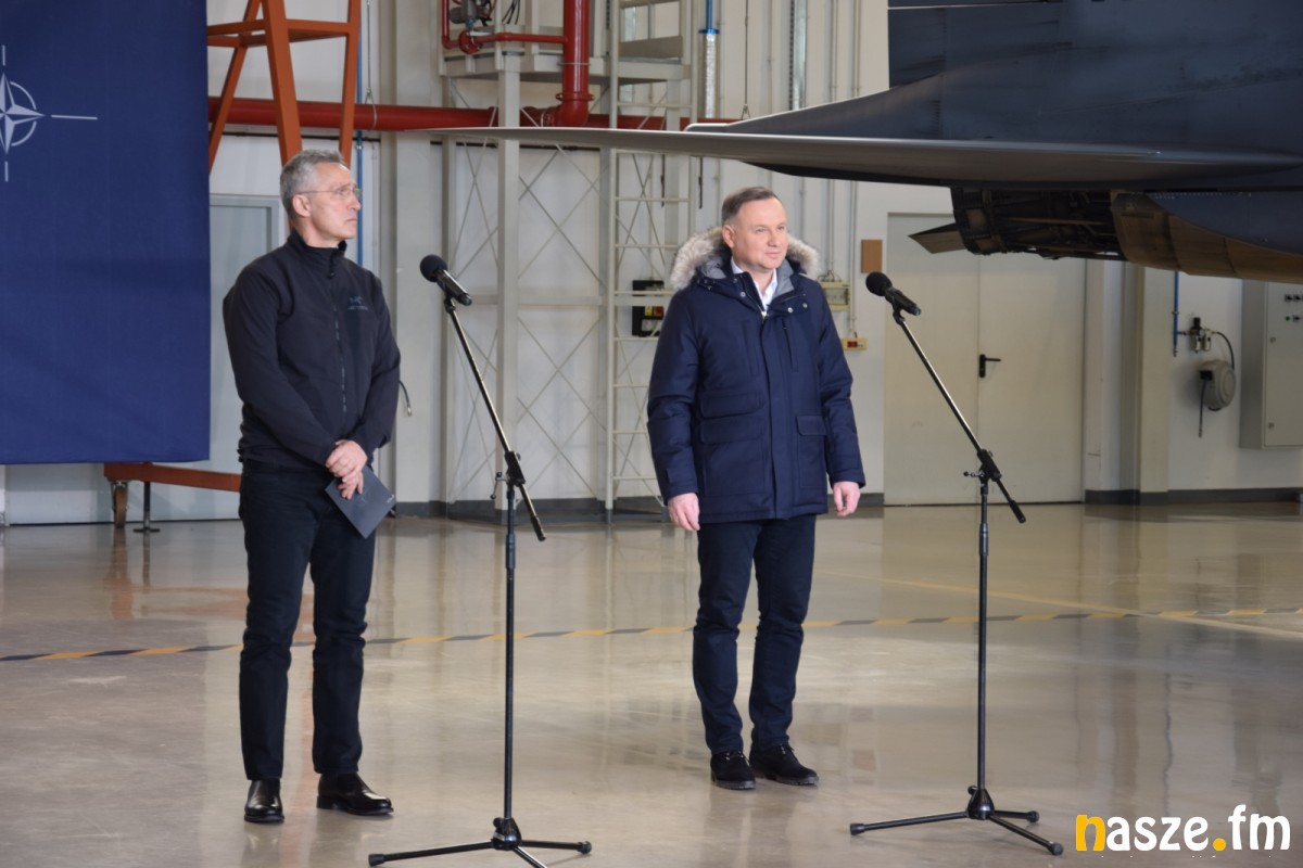Sekretarz Generalny NATO oraz prezydent Andrzej Duda odnieśli się również do pytań dziennikarzy dotyczących wsparcia Ukrainy samolotami NATO.