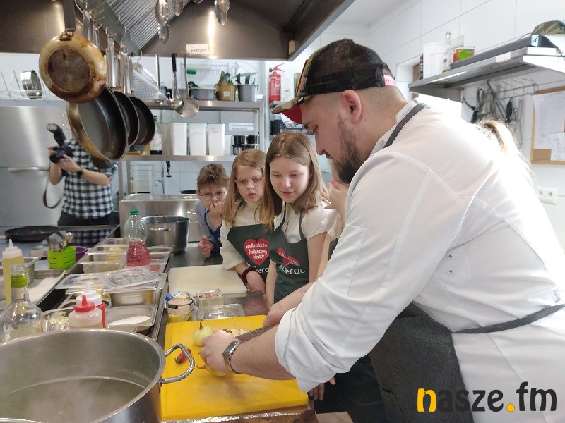 W hotelu Wróblewscy odbyło się dzisiaj wielkie gotowanie z szefem kuchni Dominikiem Wróblewskim i prezydentem miasta Sieradza Pawłem Osiewałą. To nagroda wylicytowana na naszej antenie podczas 30. finału Wielkiej Orkiestry Świątecznej Pomocy. Licytację wygrała pani Arlena Przelazła-Matusiak, wychowawczyni klasy 4D ze Szkoły Podstawowej nr 10 w Sieradzu.